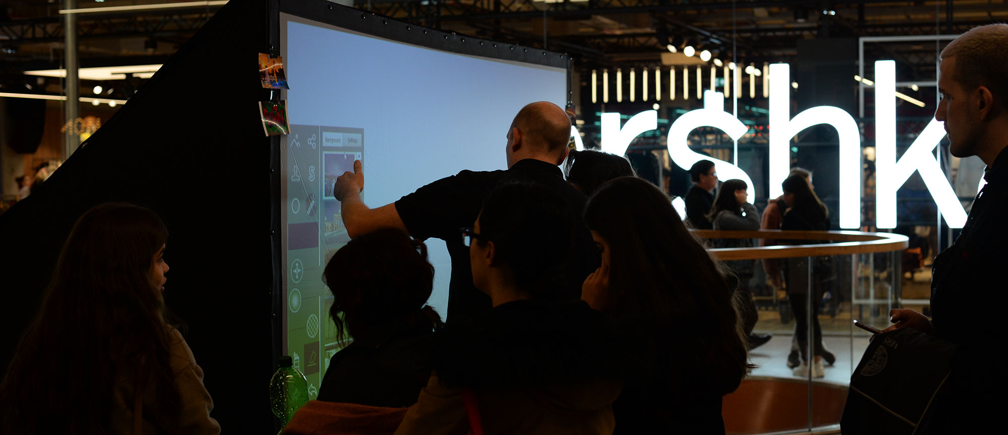 Ob Wände, Türen oder andere Objekte: Fragen Sie uns ob wir unseren Leinwand-Screen integrieren können! Unsere internen Handwerker und Designer sind sehr geschickt und kreativ. So können Sie unsere Digitale Graffiti Wand zur Event-Interaktion einfach in Ihren Messestand einplanen. Auch die Screengröße ist variabel und interne Interfaces anpassbar.