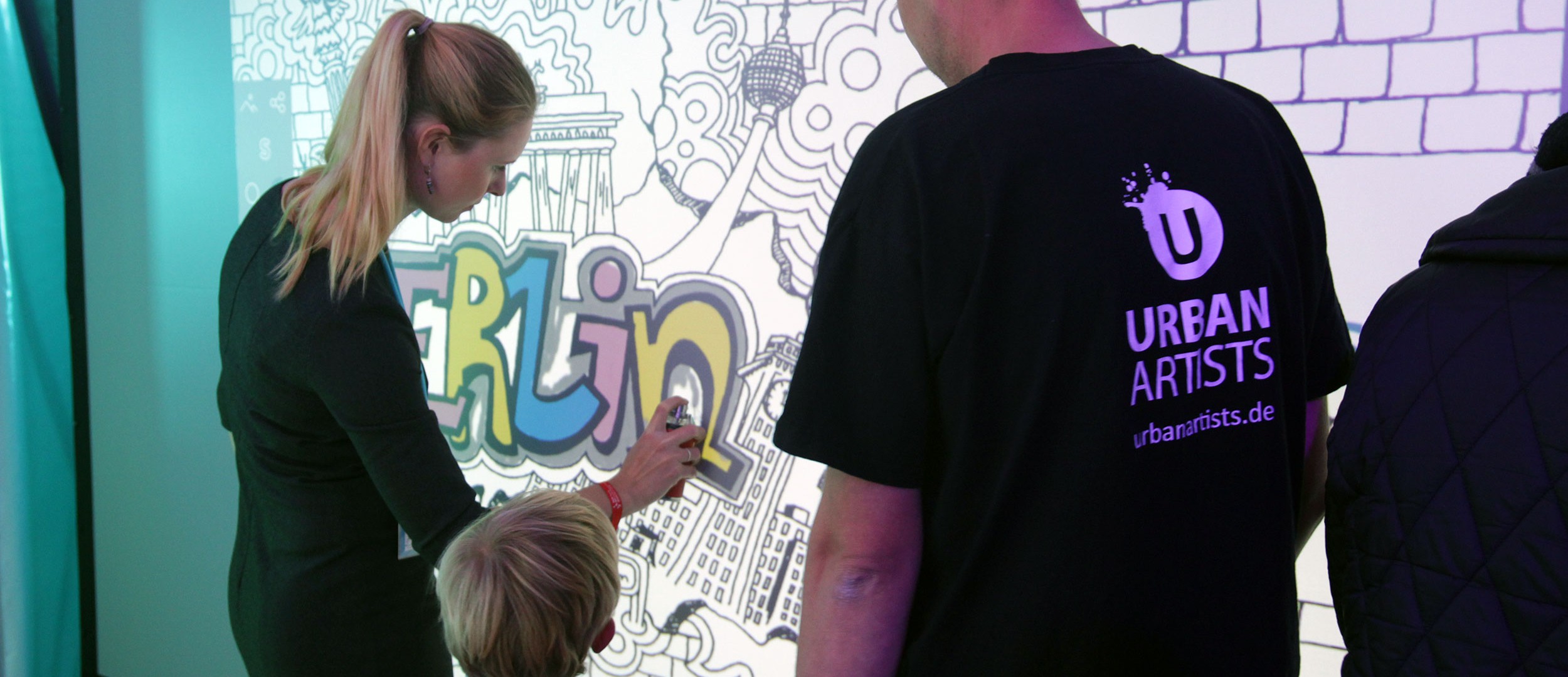 Gelungenes Teamplay! Urban Artists Digitale Graffiti Wand im Maritim Hotel Berlin