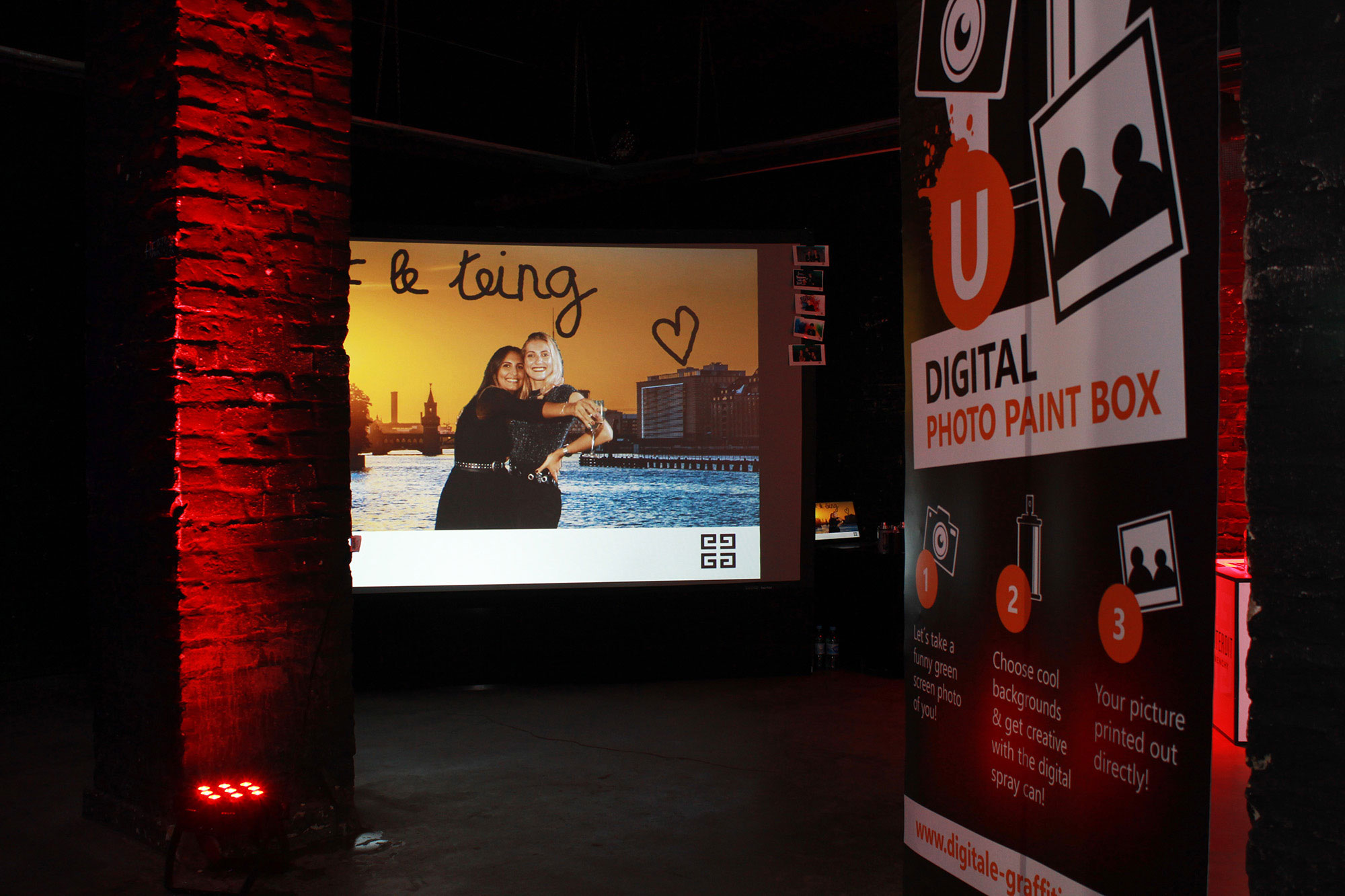 Digitale Graffitiwand mit Photobooth für Givenchy in der alten Münze, Berlin Mitte